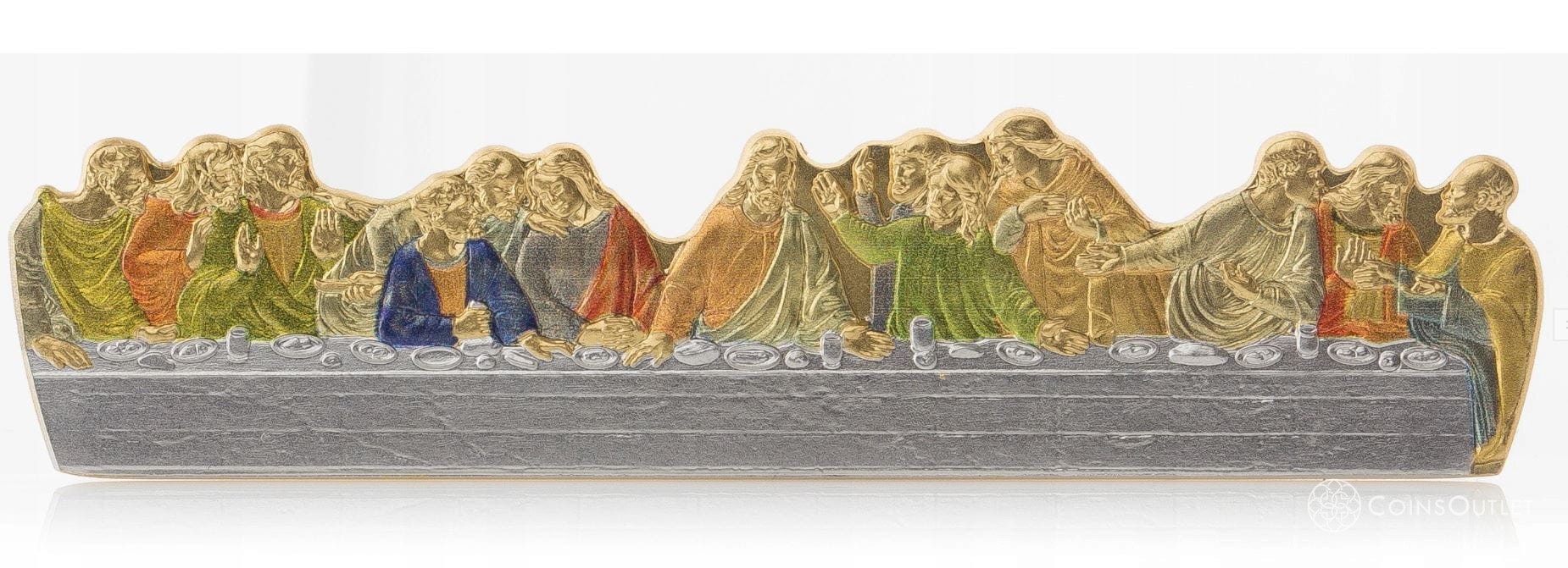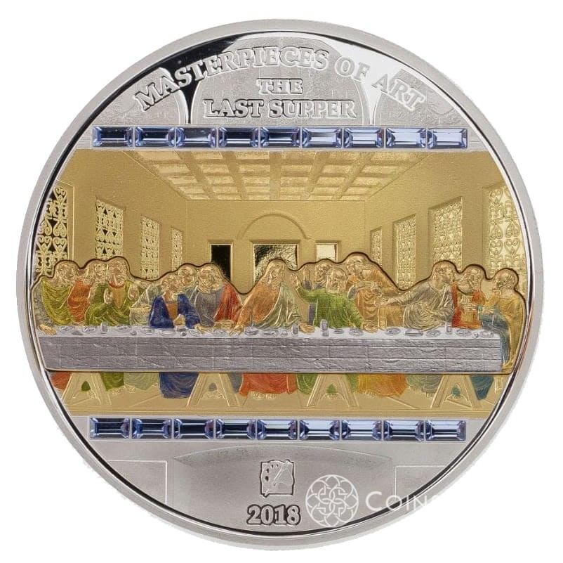 Tego typu monetę z serii Masterpieces of Art można potraktować przede wszystkim jako numizmat zaprojektowany dla miłośników chrześcijańskiej sztuki. Tematem przewodnim jest obraz Leonarda da Vinci ostatnia wieczerza, czyli wydarzenie wspominane podczas Wielkiego Czwartku. Wtedy to Jezus zebrał apostołów, by tuż przed pojmaniem i męczeńską śmiercią na krzyżu, dokonać przemienienia krew w wino a ciało w chleb. Każda mszalna eucharystia jest pamiątką ostatniej wieczerzy.