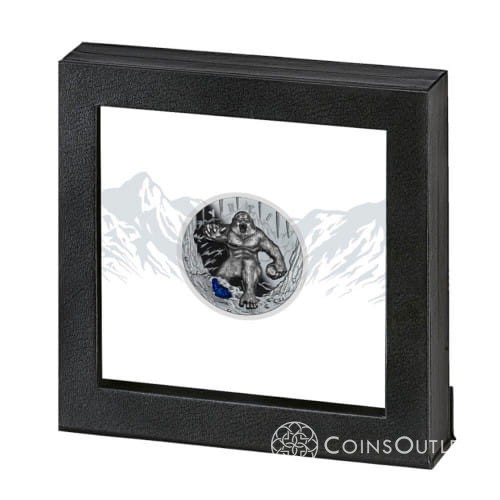 Pradawny stwór samotnie przemierzający Himalaje wciąż owiany jest legendą. Dwuuncjowa moneta przedstawia wizerunek groźnego Yeti w jego naturalnym, górskim środowisku. Finezyjne wypełnienie żywicą w połączeniu z selektywnym wykończeniem antique finish pozwala cieszyć się artystycznym okazem numizmatycznym. Przedmiot z pewnością sprawdzi się jako idealny prezent dla miłośników zimowych pejzaży oraz zaintryguje koneserów mitycznych historii.